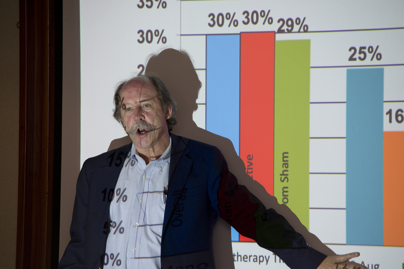 El Dr. Andrea Mesén, Co-Director de la Clínica TMS Costa, presentó un resumen de más de 250 casos tratados con TMS. Su presentación, enfocada en pacientes que sufren de depresión, mostró el impacto de la aplicación pionera utilizando un periodo de dos semanas con dos aplicaciones diarias. Entre los resultados, destacó el porcentaje promedio de éxito con los pacientes de depresión, en aproximadamente 70% de los casos.